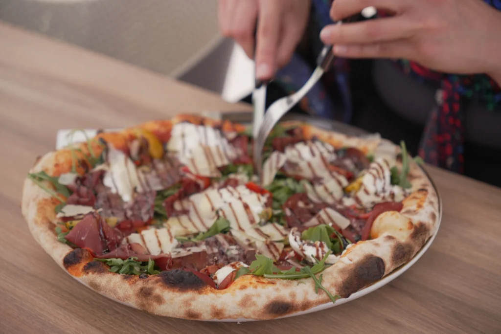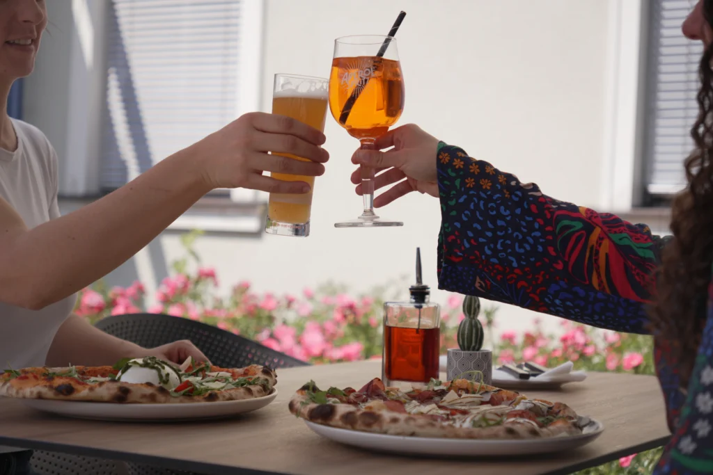 Gute Gesellschaft, heiße Pizza und ein kühler Drink – was will man mehr?